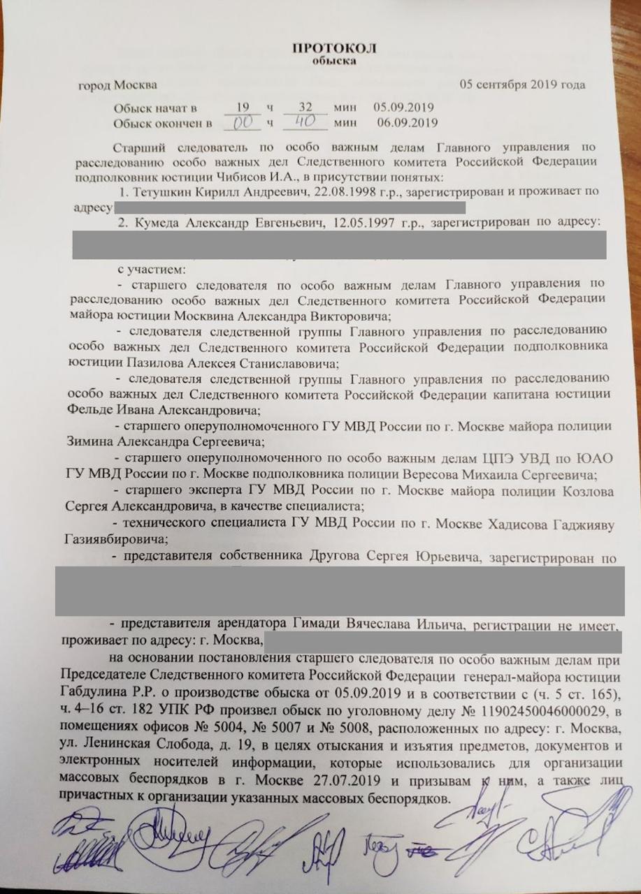 Член следственной группы, проводившей обыск в офисе ФБК по делу о «массовых беспорядках» во время митинга 27 июля 2019 года.